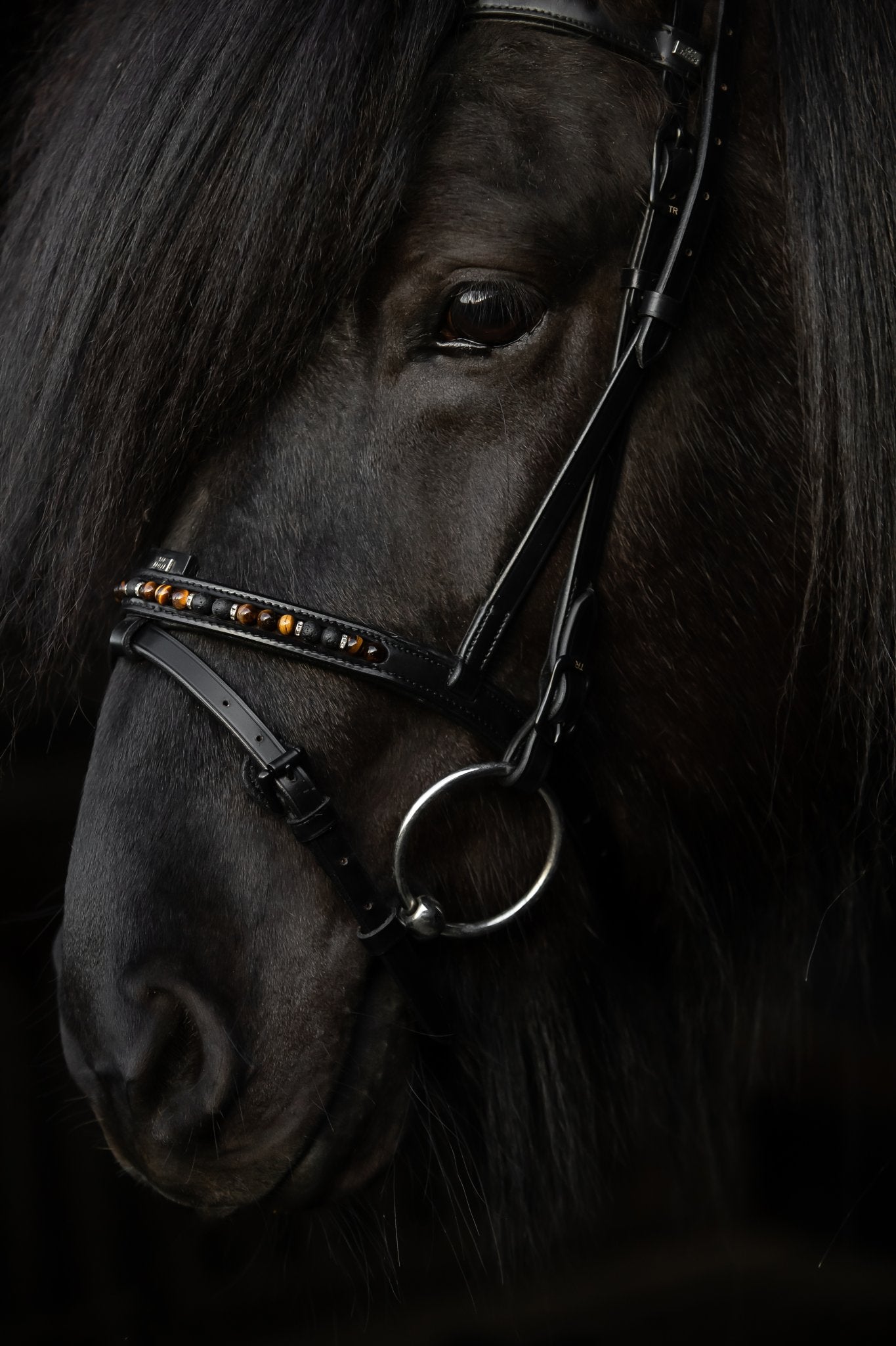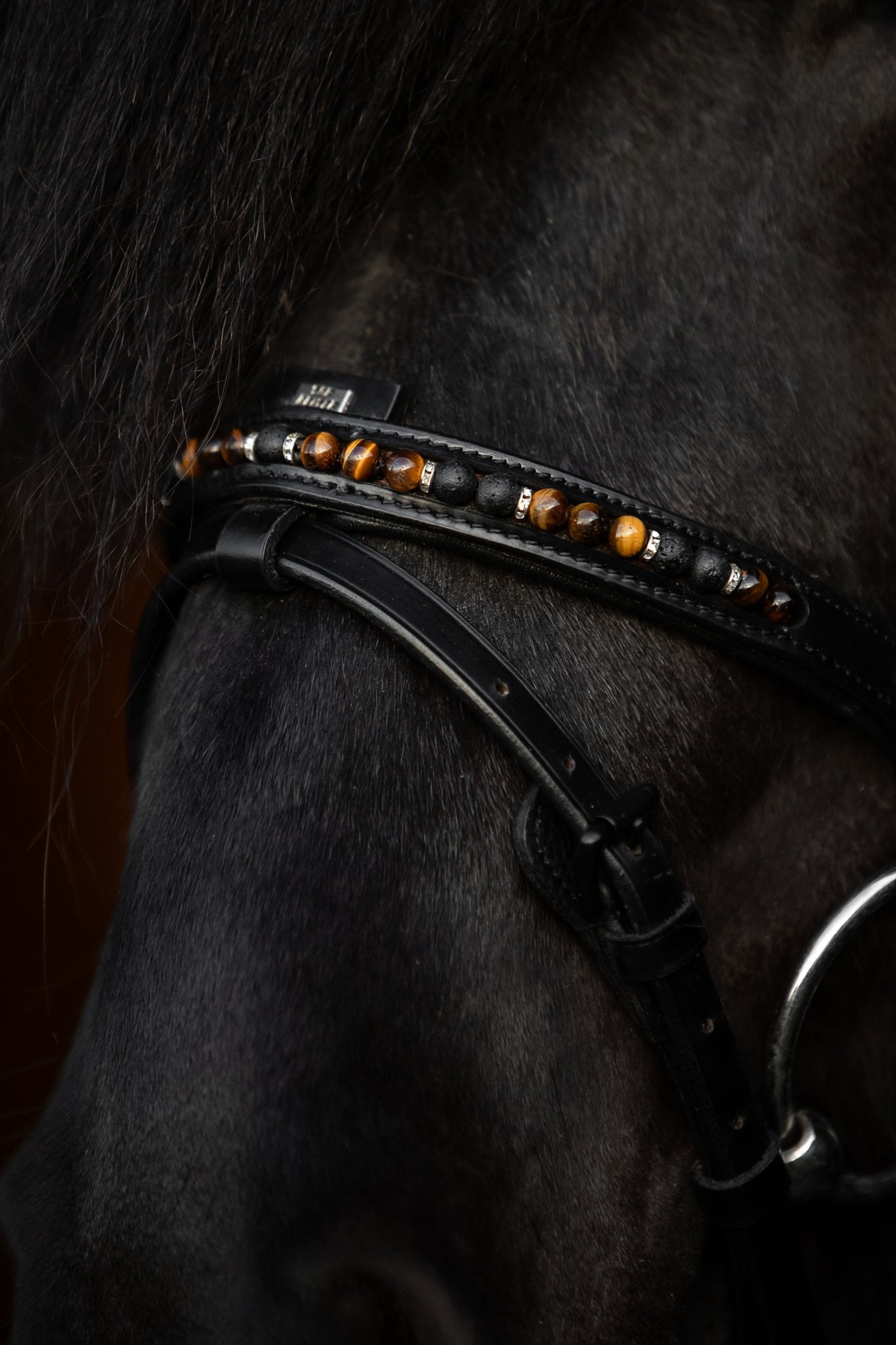 Et premium engelsk næsebånd med aftagelig kæberem, fremstillet i blødt, dybsort læder – skabt til ryttere, der værdsætter elegance, komfort og en forfinet kontakt til hesten.