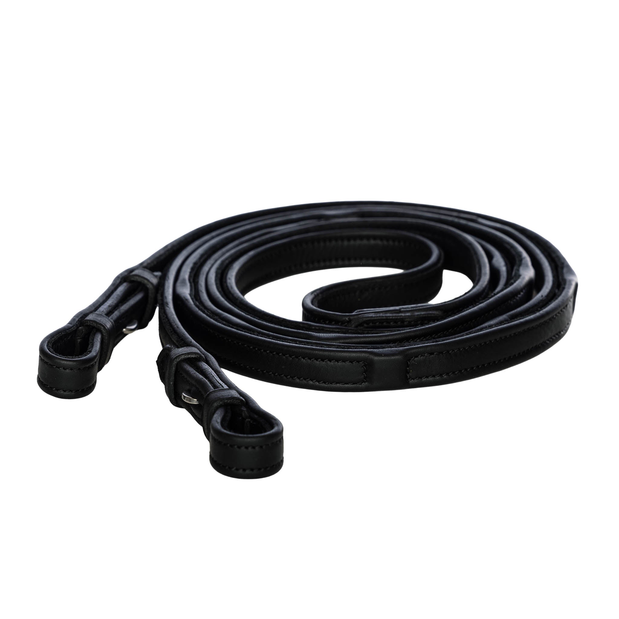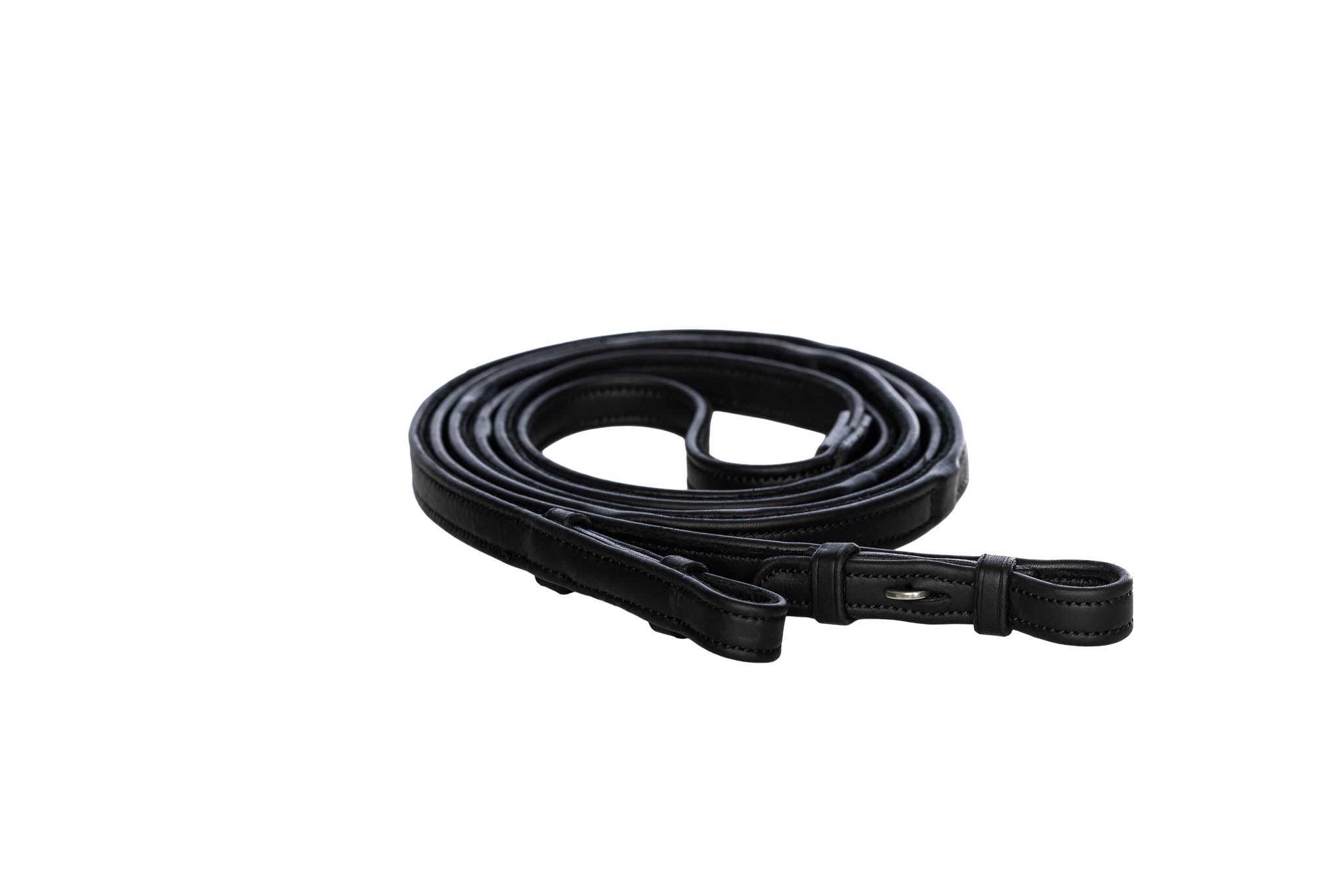 Stopperne ligger skjult under læderet og skaber en behagelig overgang. Tøjlerne er smalle og flade, hvilket gør dem lette og behagelige mellem fingrene.