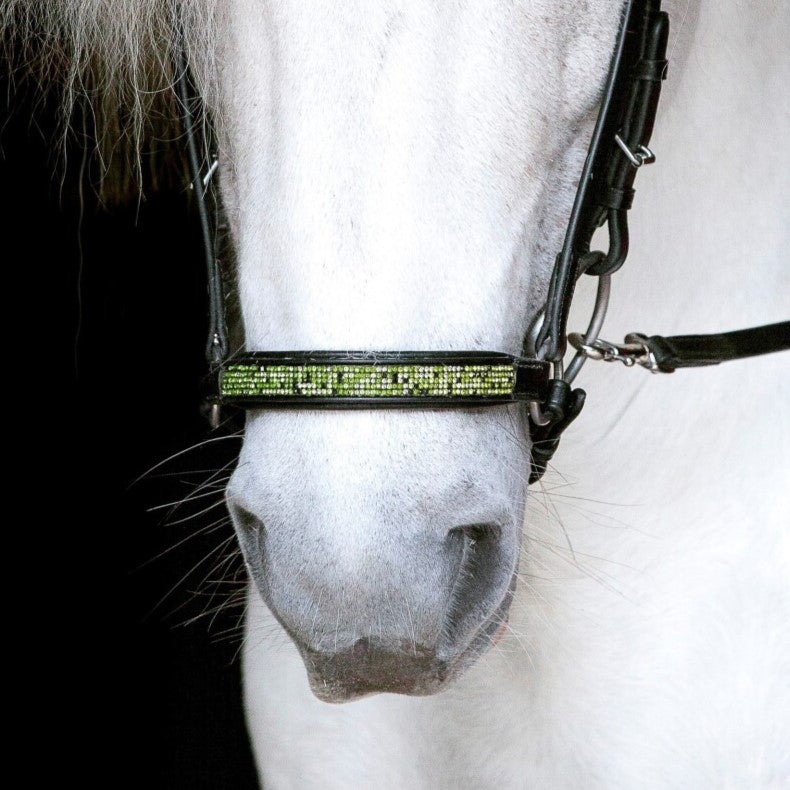 • Spændebeskytter for at forhindre klemning Indlejrede rhinesten i næsebånd