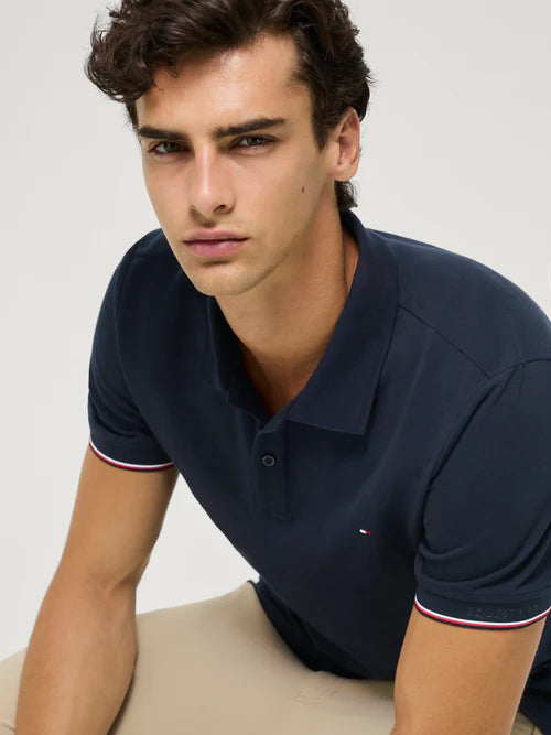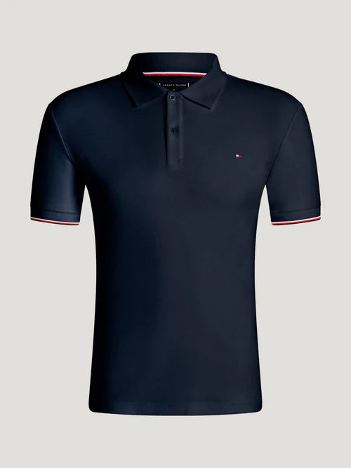 Det klassiske polodesign med knaplukning får et eksklusivt twist gennem de ikoniske Tommy Hilfiger detaljer: TH-flaget på brystet og de globale signaturstriber ved kanten. Med sin normale pasform er det nemt at style og behageligt at have på hele dagen.